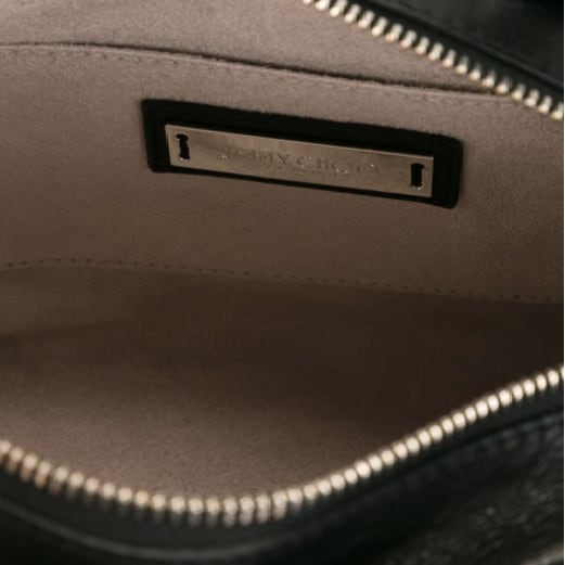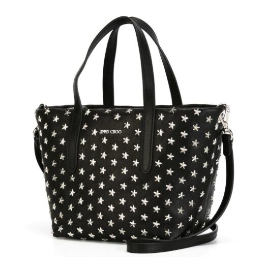 Jimmy Choo(ジミー・チュウ)の、Sara トート ミニ(ブラック)。トラペーズスタイル、シルバートーンのロゴプレート、シルバートーンのスタッズ、トップハンドル、取り外し可能なショルダーストラップ、トップファスナー、内側にスリップポケット、内側にロゴプレート。レザー製。