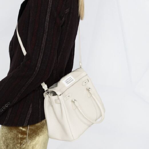 4ステッチ、トップハンドル x 2、取り外し&調節可能なショルダーストラップ、ジップクロージャー、ゴールドトーンの金具、シルバートーンの金具。ホワイト。