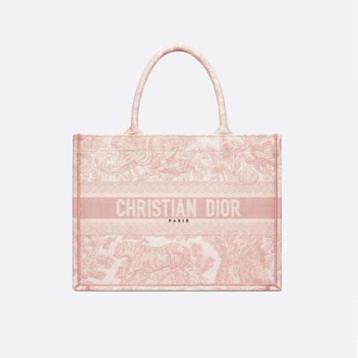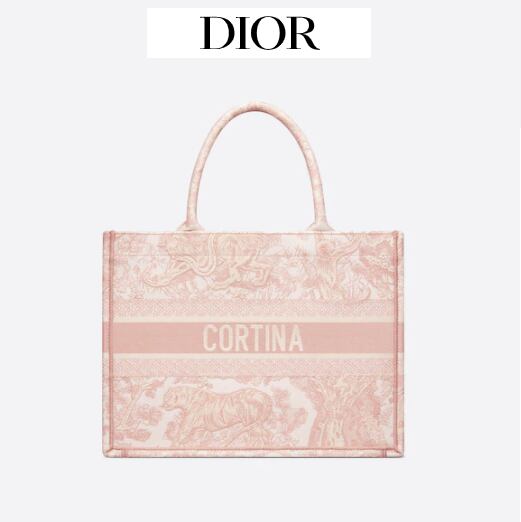 クリスチャンディオールの芸術監督であるマリアグラツィアキウリが署名したオリジナルの作品であるディオールブックトートは、現在、ハウスのクラシックです。日常の必需品をすべて収納できるようにデザインされた小さなバラのモデルには、Toile deJouyのパターンが完全に刺繍されています。旅行への招待状のように、片面にクリスチャンディオールのサイン、もう片面にコルティナのサインが飾られています。このトートバッグはディオールのノウハウの良い例であり、小さな革のポーチなどの他のアクセサリーを入れることができます。