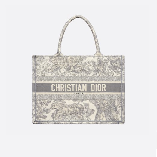 クリスチャンディオールの芸術監督であるマリアグラツィアキウリが署名したオリジナルの作品であるディオールブックトートは、現在、ハウスのクラシックです。日常の必需品をすべて収納できるようにデザインされた小さなバラのモデルには、Toile deJouyのパターンが完全に刺繍されています。旅行への招待状のように、片面にクリスチャンディオールのサイン、もう片面にポルトフィーノのサインが飾られています。このトートバッグはディオールのノウハウの良い例であり、小さな革のポーチなどの他のアクセサリーを入れることができます。