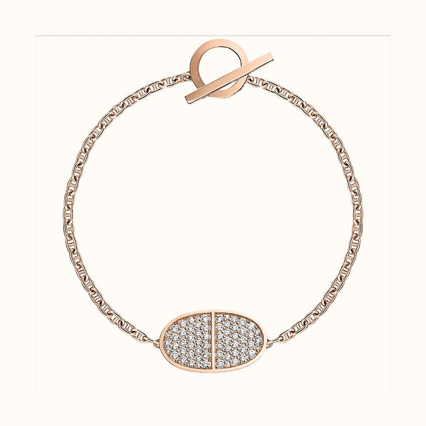 ダイヤモンドをセットしたローズゴールドチェーンブレスレット、リングスティッククラスプ